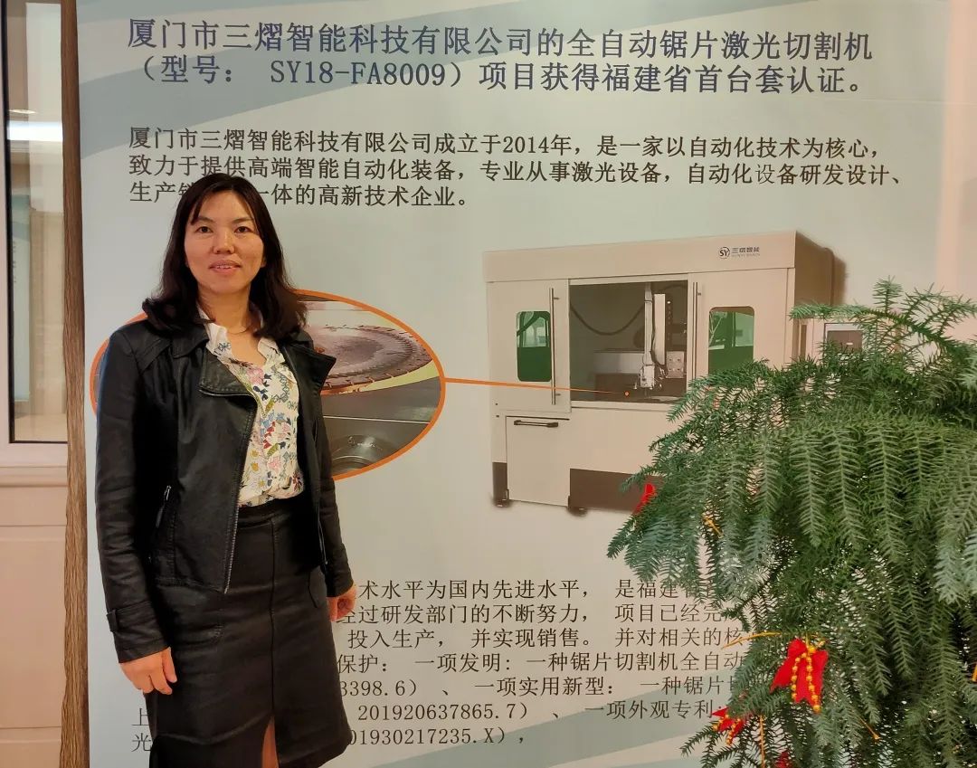 企业产值的突飞猛涨,让玉贵意识到一家企业要想保持蓬勃发展的势头,就必须不断创新,不断提高企业核心竞争力。于是,在2018年5月,玉贵申请了第二次妇女创业小额贴息贷款项目,用于创新技术。2019年,玉贵放缓脚步,带领团队专注研发,终于在2020年1月,全自动锯片激光切割机获得2019年福建省首台(套)认定,这标志着厦门三熠智能科技有限公司进入行业技术领先队伍。